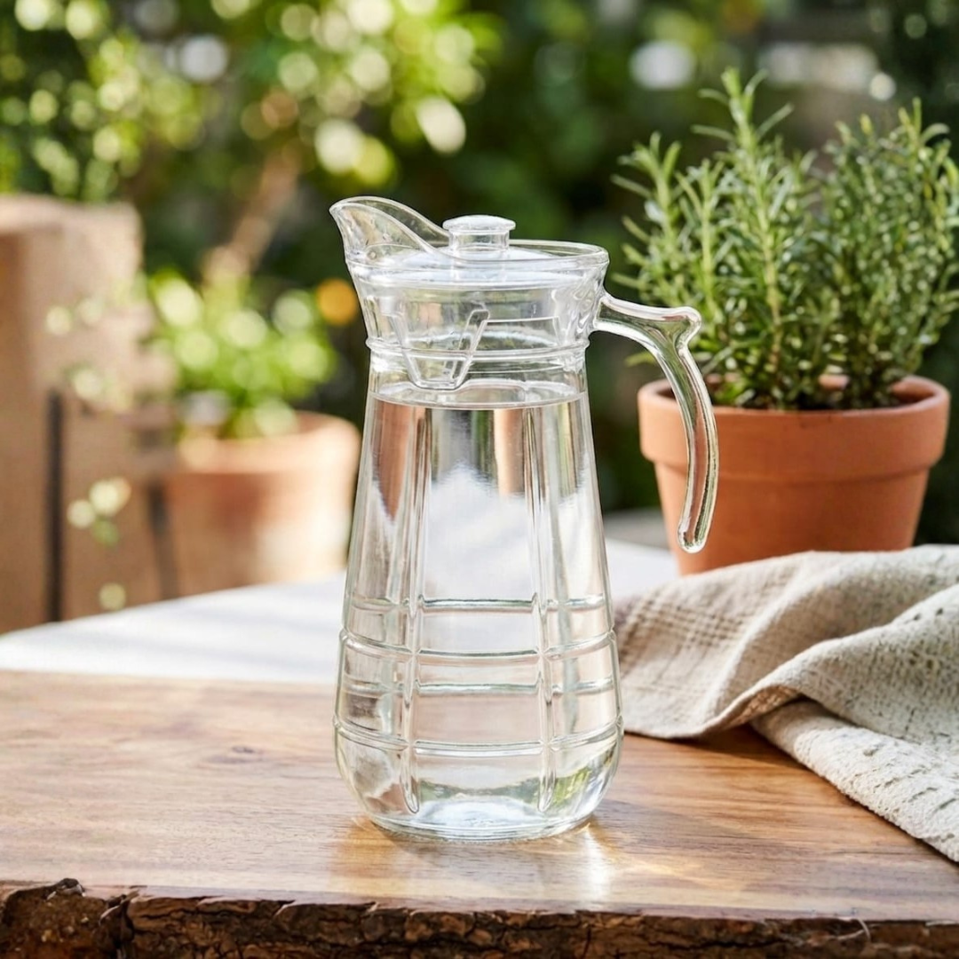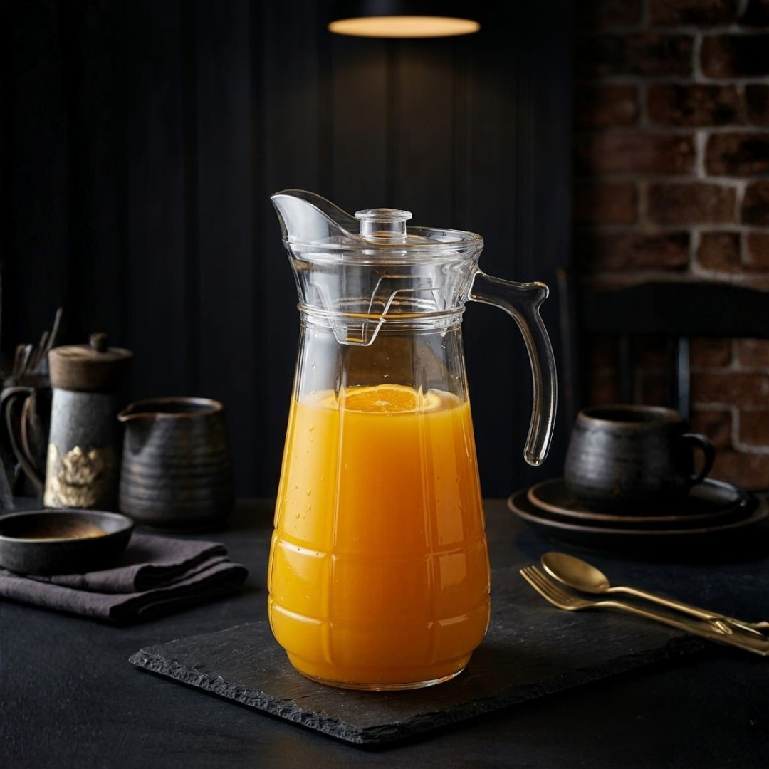 Description – Enhance your serving experience with this stylish and practical glass water jug. Designed with a modern look and a sturdy handle, this jug is perfect for serving water, juices, infused drinks, and more. Its transparent glass body beautifully showcases beverages, making it ideal for both everyday use and special occasions.