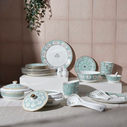 Description – Dinner sets with blend of Traditional Indian Prints along with modern colors and gold work