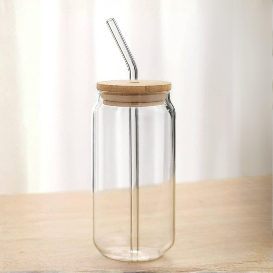 Mason Jars with Bamboo Lids and Straws, 540 ML, For Iced Coffee Cup,Smoothie Cups, Ideal for Bubble Tea, Single Piece, Glass Soda Can Jar