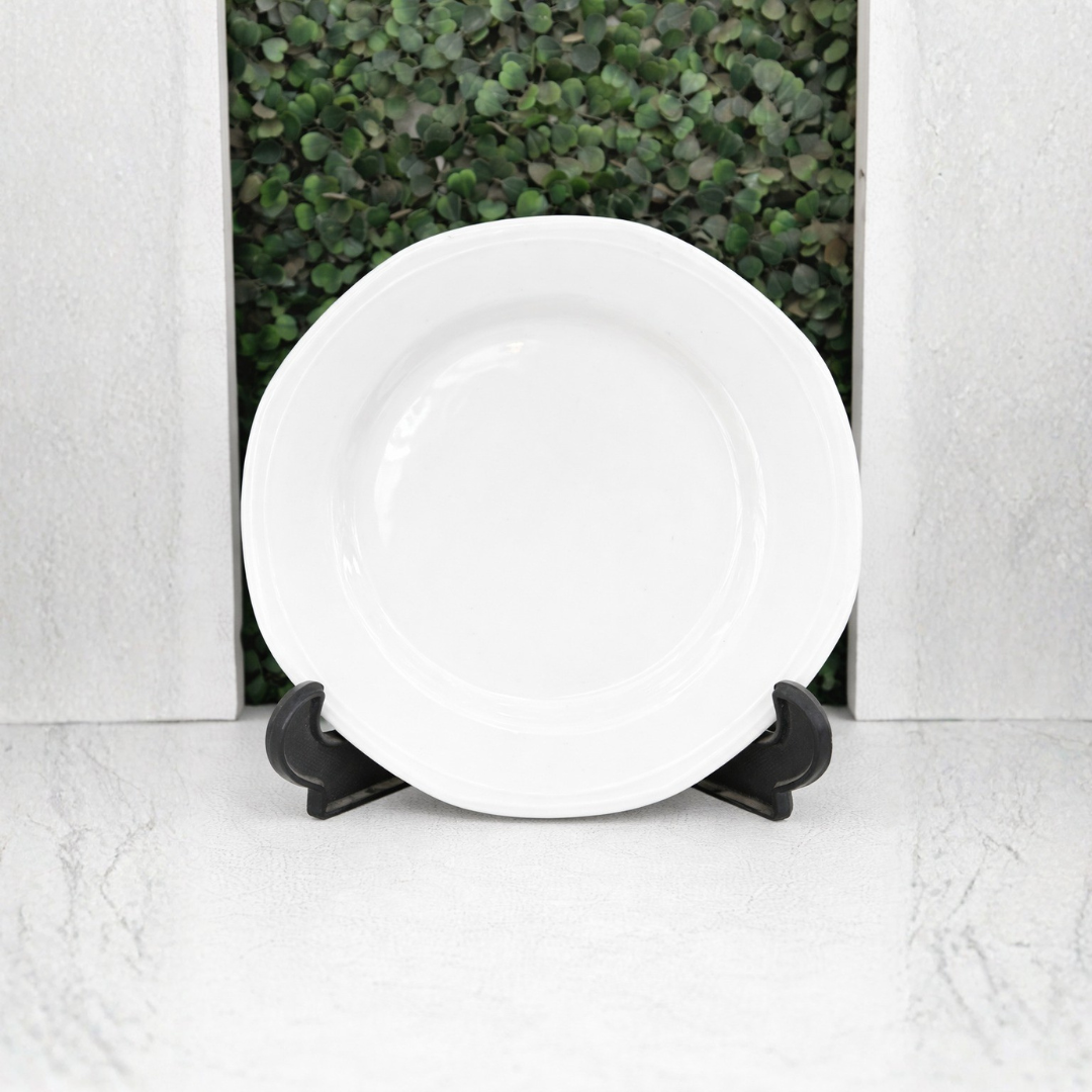 Octa Quarter Plate with wavy pattern 7″ Ceramic BnB Plate, Snack Plate, Set of 6, Plain White