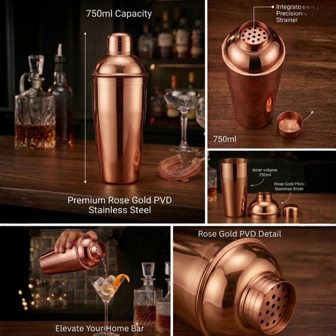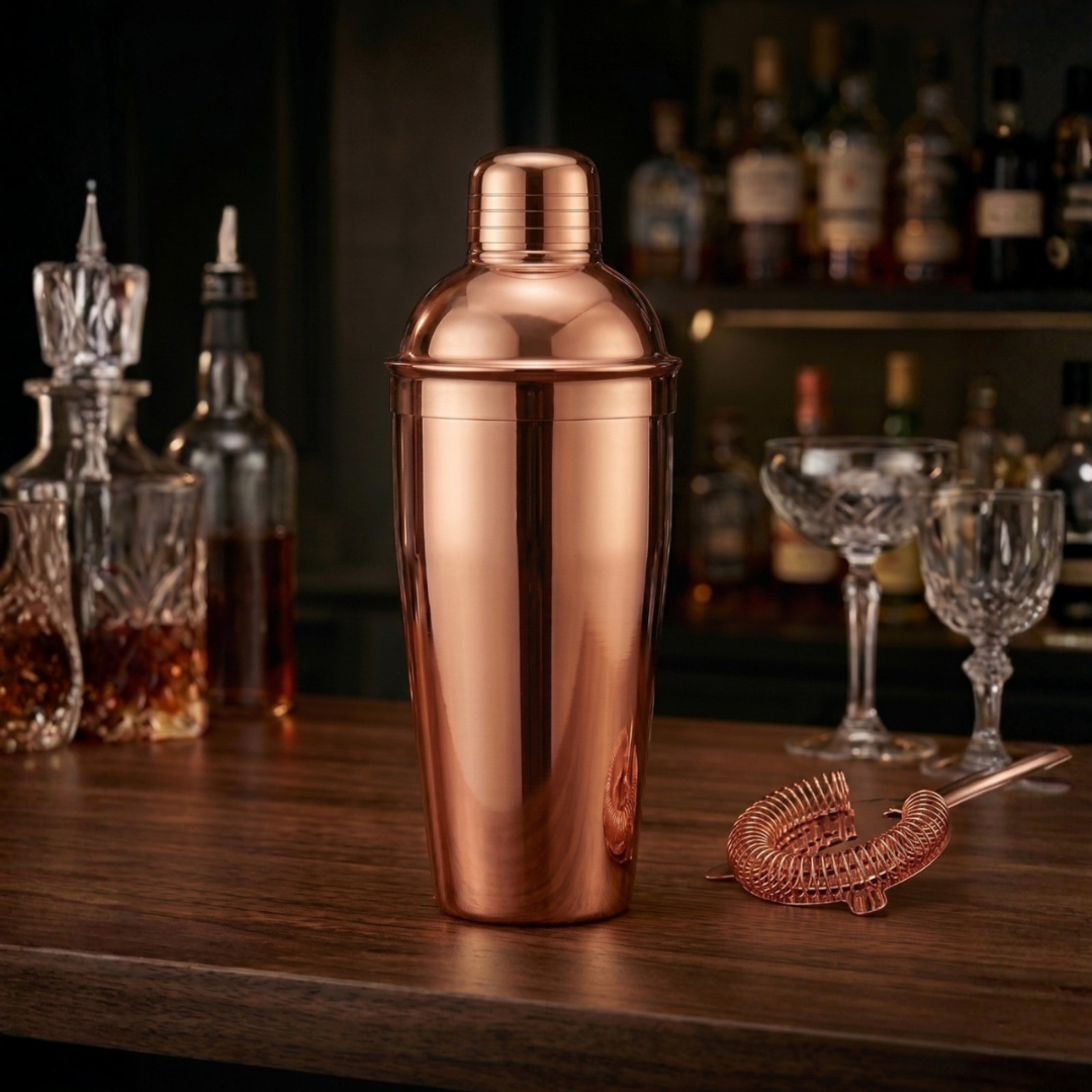 Stainless Steel, Cocktail Shaker with Built-in Strainer, Rose Gold PVD, 750 ml, Single Piece
